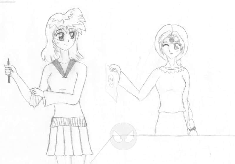 Ich hab mich noch nicht getraut, eine Colo zu machen, weil ich das am Computer nicht so gut kann. Und wenn ich der Zeichnung jetzt mit Buntstiften zu Leibe rücken würde, hätte ich Angst, alles zu ruinieren^^ Naja, vielleicht versuch ich es nochmal...