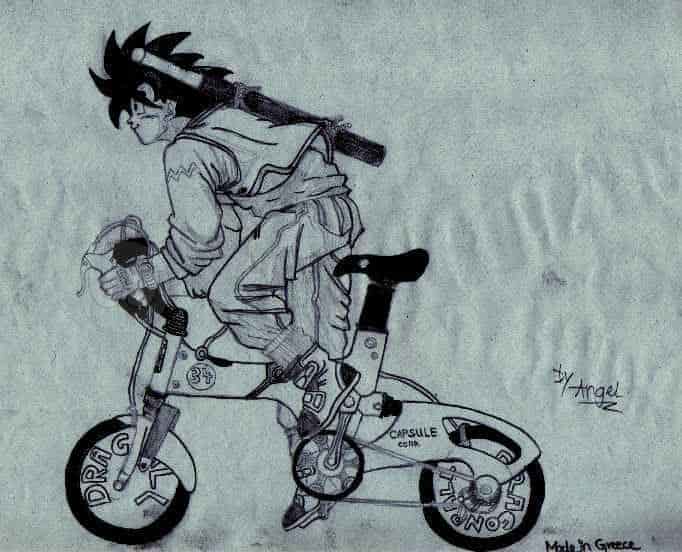 Goku auf Fahrrad