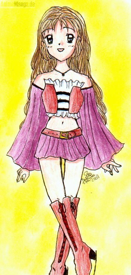Außerdem hab ich n Tuschefüller abgestaubt!!! *grinsel* Mit dem hab ichs getuscht. aber bei den Beinen ist irgendwie was schief gelaufen und ich finde sie guckt zu lieb... ach und ursprünglich sollte sie auch keine schlittschuhe anhaben. Das is übrigens Anie, ein neuer Chara^^ Hope you like it.