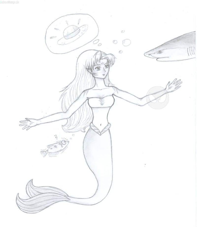 Diese Meerjungfrau von der Grandline erzählt einem Hai gerade von einer Begegnung mit dem Strohhut und des kleine Fischli fürchtet sich ganz arg vor dem Hai und nicht etwa vor der Erzählung der Meerjungfrau ;)