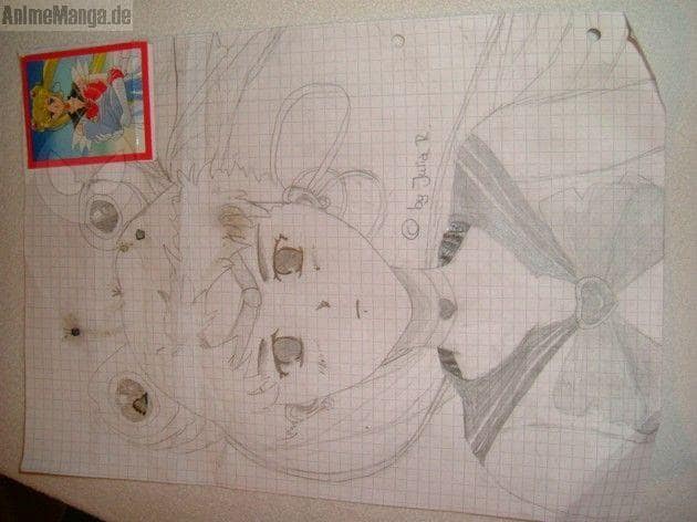 Also, mein erstes Bild, leider nur abgemalt /(die Vorlage seht ihr oben) und nicht besonders gut getroffen... Die Haare sind schrecklich und die Arme auch... Naja, auf jeden Fall bitte ich um Bewertung!