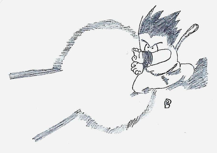 Chibi-Goku feuert gerade ein Kamehame-Ha ab.