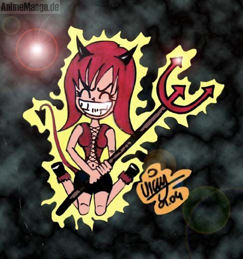 Also hab ich ein Teufelchen daraus gemacht und noch ein bisschen am PC nachbearbeitet. Ich finds irgendwie süß. Man könnte es auch als Selbstportrait bezeichnen, weil ich auch irgendwie ein Teufelchen bin, aber eins dass dauernd lacht^^ naja, oder auch nicht...