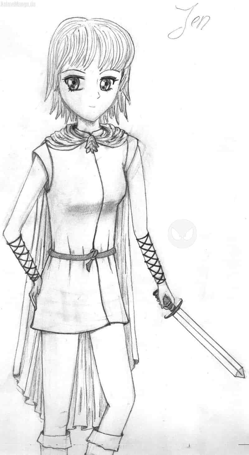Puh, so lange bin ich glaub ich noch nie an einem Bild gesessen. Das Bild hab ich nach meiner besten Freundin benannt, weil sie auch gerne mit Waffen so kämpfen würde. Ich weiß, die Proportion stimmt nicht ganz, aber ich glaub, so lagnsam wird es. Und wie findet ihr es?