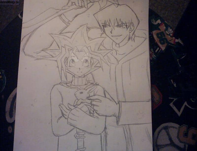sohoooo ^^ diese jenes, was ihr hier seht... ist die vorskizze, zu einem Seto + Yugi Bildschön... *peinlich denkt*... ich kann diese leutz net malen... scheiß Frisuren.. *heul*... wenn es fertig ist, werde ich es wieder meinem schatze ( meiner besten freundin ) schenken, die übrigens auch das Bild mit dem Bakura und Marik- Nackedeis über ihrt bett gehängt hat... -.-` ich hoffe es gefällt euch^^ und wiedermal an alle Yu Gi Oh - Fans... tut misch voll fett sorry... ^^``` hap euch alle lüp...