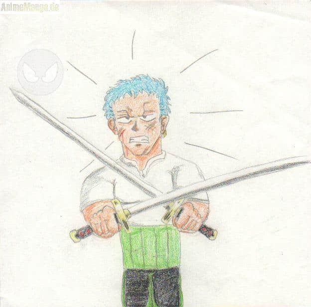 Das Bild soll Zorro im Kampf darstellen oder beim Training ,jedenfalls ist er ganz schön aus der Puste ....