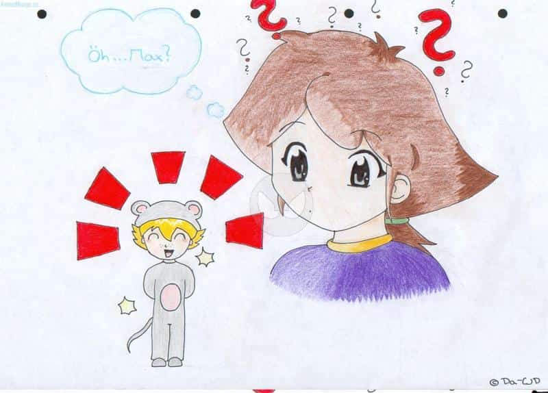 Also erklär ich es euch: Dad is ein kleines Maxchen das ich in ein Mäusekostüm gesteckt hab und dad rechts da dad bin ich, un wie man sieht wundere ich mich ziemlich...max scheint das kostüm allerdings zu gefallen!