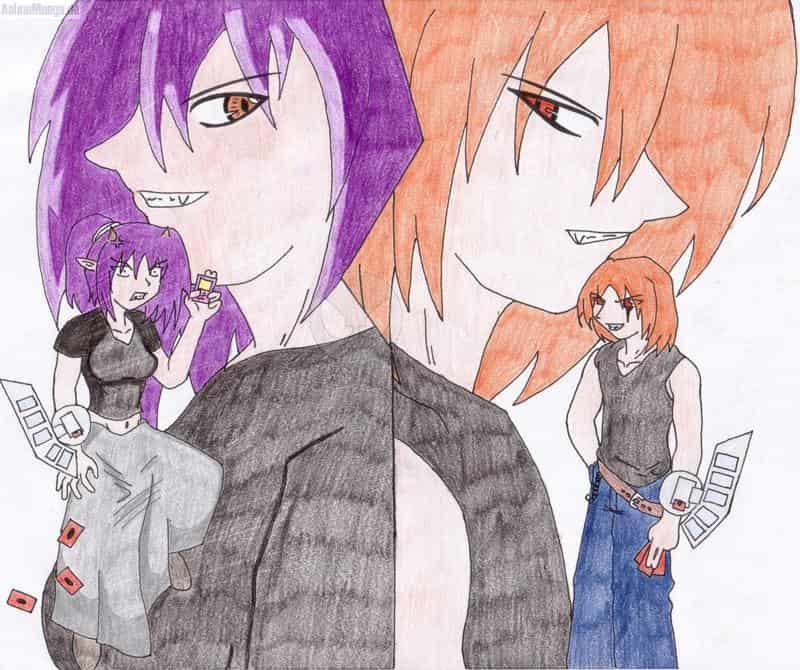 es zeigt dat sayolein und mich bei einem duel (ala yu-gi-oh) nun es scheint das sayo nicht die karte gezogen hat die sie wollte ^^- ich habe mal wieder festgestellt wie ich es hasse mit buntis grosse flächen auszumalen besonders weil das auch meist scheisse aus sieht aber im grossen und ganzen gefällt mir das bild vor allem die profilansichten (hab wohl zu viel hellsing geguckt) gewidmet isses dem lieben sayolein joah ^^also bis bald greez <(((_^))> majoh