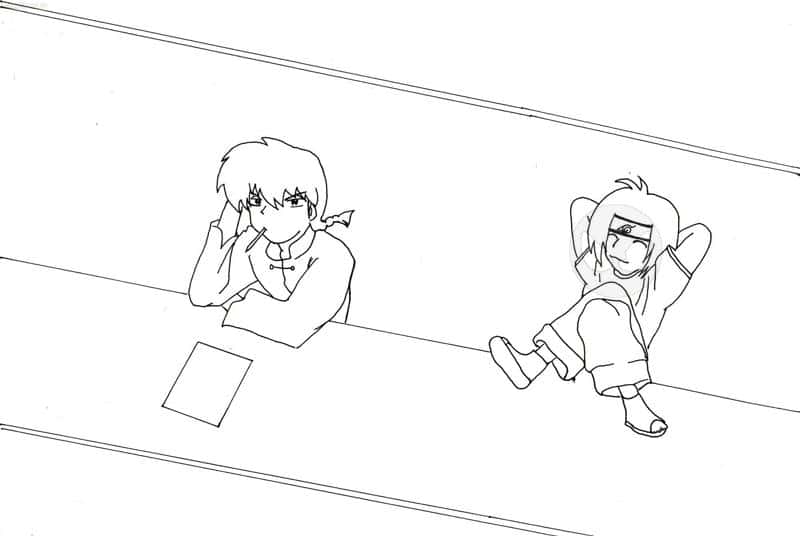 sodele mein kleines verwirrtes hirn hat es jetzt doch noch hingebracht das versprochene bild für ranmalove zu basteln... es soll ranma darstellen wie er in der schule hockt... und damit ihm nicht langweilig is leistet ihm majoh noch ein wenig gesellschaft obwohl der sich auch nicht gerade am unterricht beteiligt ^^ myo in letzter zeit bin ich ein wenig colo-faul geworden liegt aber vielleicht auch daran das ich nich weiss wie ichs colorn soll... myo also das bild is ranmalove gewidmtet greez <(((_^))> majoh