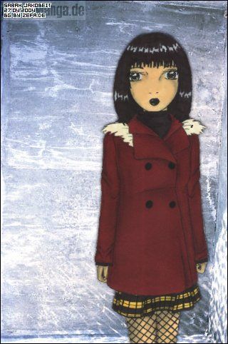 Komm:Jetzt fällt mir erstmal auf, was die für einen massigen Kopf hat*drop* Und ich hab diesmal wieder ein Foto als HG genommen, weil ich einfach keine Idee für einen Hintergrund hatte. Trotzdem mag ich es irgendwie. Es strahlt etwas aus, das mich echt faziniert....an sich bin ich also zufrieden^^ Ich mag die Klamotten*höhö*