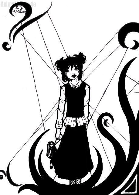 Joah, das passiert, wenn man sich abends ein Video mit seiner kleinen Schwester anschauen will, der Videorekorder aber plötzlich nicht mehr funktioniert und man sich dann ziemlich langweilt, weil nichts Interessantes im Fernsehen läuft. Inspiriert wurde ich durch all die S/W Bilder, die ich inzwischen entdeckt habe und wollte es gerne selber mal probieren. Abgesehen davon, dass das Mädel keine Taille hat, bin ich irgendwie zufrieden^^