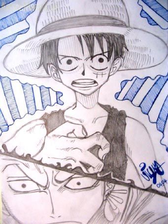 Hallöchen nochmal, das ist jetzt das letzte Bild für heute, die nächsten lade ich erst hoch, wenn ich ordentlich Kommentare bekomm *schwör* !!! Also, das hab ich schon voe einiger Zeit mal in der Sauna gezeichnet. also im Cafe in der Sauna ^^ Ist nicht ganz perfekt, die Hand ist zu groß und der eine Arm viel zu dünn. Das da unten sollte Zorro werden, aber ich habe Probleme den Kerl zu zeichnen. Ich sollte es in Zukunft lassen XD Das Blaue ist Tinte, dass es nicht so fad aussieht. Hoffentlich gefällt es euch! Schreibt mir fleißig, sonst gibts nix neues :P Babaaaaa Wiggieh PS.: BUSSIEH!