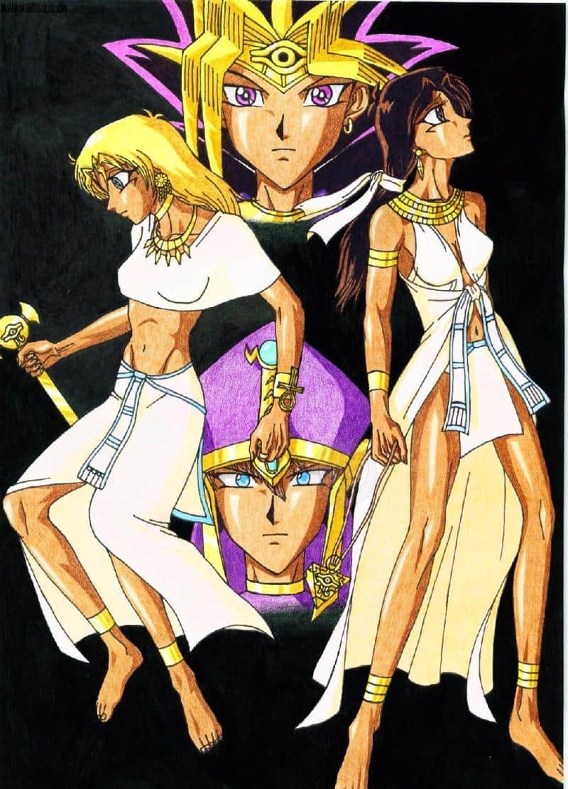 Endlich hab ich mein erstes Bild ins Net gekriegt! Ist zwar nicht gerade das Beste, aber immerhin...(Atemu sieht etwas seltsam aus, oder?)