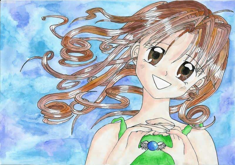 Gestern wollte ich ein Bild zeichnen und da dachte ich, zeichne doch mal das Bild ab, was du schon immer mal zeichnen wolltest. Ich hab also angefangen, aber dann ist mir aufgefallen, das sie viel zu groß geraten ist. Also wollte ich es wegschmeißen, hab mich aber doch umentschieden, warum weiß der Henker. Die Hände wollte ich aber nicht so, wie auf dem Bild, deshalb hab ich sie mal so gezeichnet. Hände sind voll schwer, besonders wenn man keine Vorlage hat, finde ich. Deshalb sind die auch so hässlich geworden, da ich versuchen musste, meine eigenen abzumalen. Das war 'ne höllenarbeit die sich absolut nicht gelohnt hat. Mist! Aber ich mag die Haare, ich kann endlich Locken zeichnen, hurra! Außerdem mag ich die Kombi der Augenfarbe und der Haare, braun. Ach ja, die Farbe ihres Oberteils kann ich überhaupt nicht leiden, sieht furchtbar aus. Also, ich würde mich sehr über Kommis freuen.