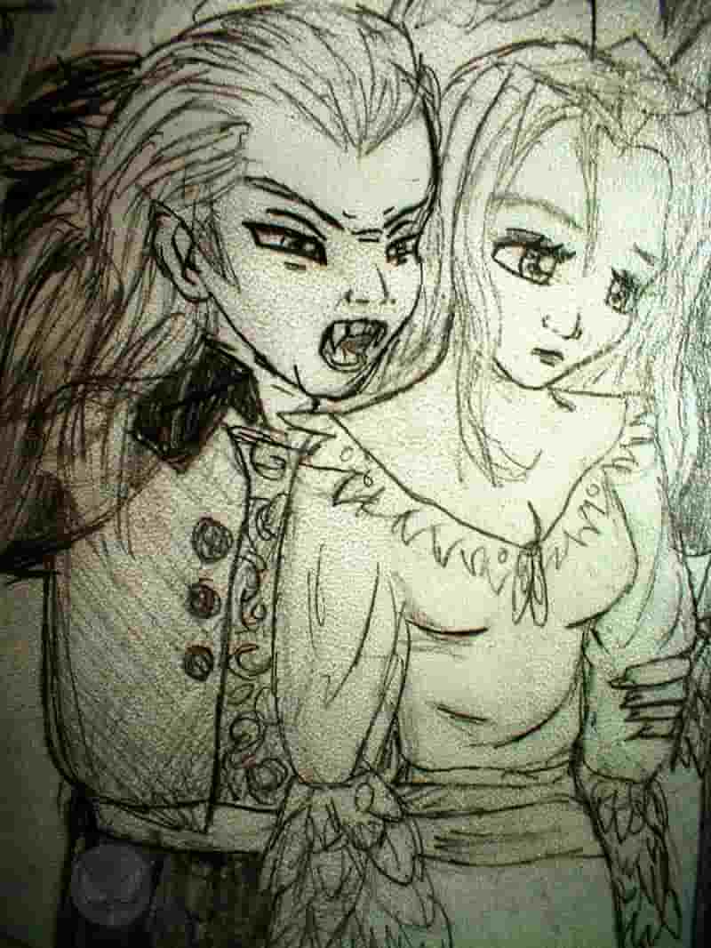 Das ist ein Ausschnitt aus einem meiner Lieblingsbilder. Eigentlich ist es mit Bleistift gezeichnet, aber mein Computer hat da irgendein komisches Ding gedreht, deshalb siehts ein bisschen komisch aus. Ich liebe Vampire *schmacht*!