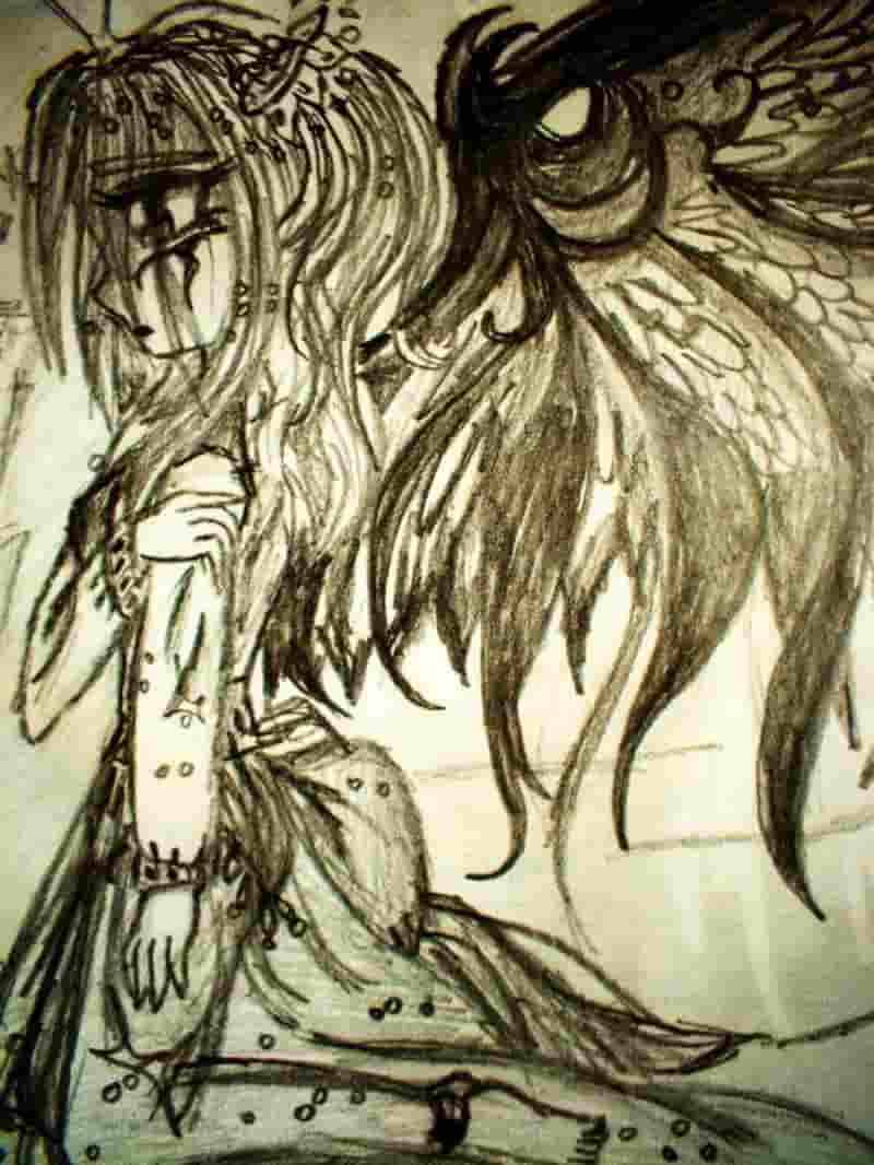 Hallöle! Das ist ein Engel..mehr oder weniger..auf einem Felsen,den man nicht sehen kann (doofe, doofe Kamera!!!).Es ist mit Blei gezeichnet und am Comp irgendwie scharfgestellt oder so...äh...kenn mich net aus! Eure Ichi-Chan!