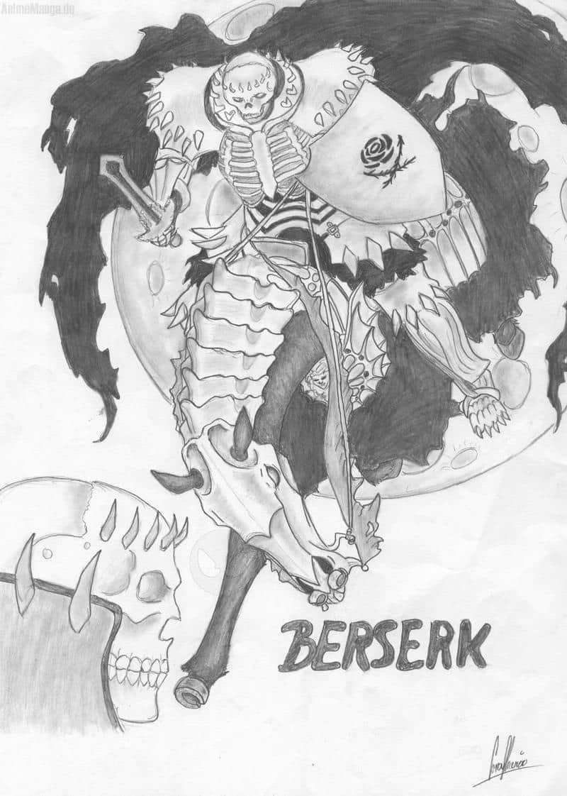 Hach ja... es schon eine Weile her, seit ich dieses Bild gezeichnet habe. Aber ich weiss es noch, als wäre es gestern gewesen! Es war 10 Uhr abends und ich habe gerade Berserk gelesen, als mir dieses Bild in de Augen stach. Da habe ich kurzerhand ein paar Blätter, einen Bleistift und einen Radiergummi genommen und angefangen. Dummerweise habe ich mich dabei total in der Zeit verschätzt... ich hatte ganze 5 1/2 Stunden! o_O