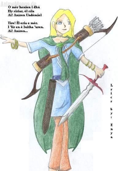 Genau wie Elena ne colorierte Bleistift colo... Was mich stört ist der Bogen, die beiden Enden sehn mir zu unterschiedlich aus... Aber dazu muss ich wieder was erklären, mh also, das ist Anna. Sie ist die zweite Tochter von Celeborn und Galadriel und sie trägt den Elbenring Nenya, des Wassers. So das wars aber auch schon ^.^