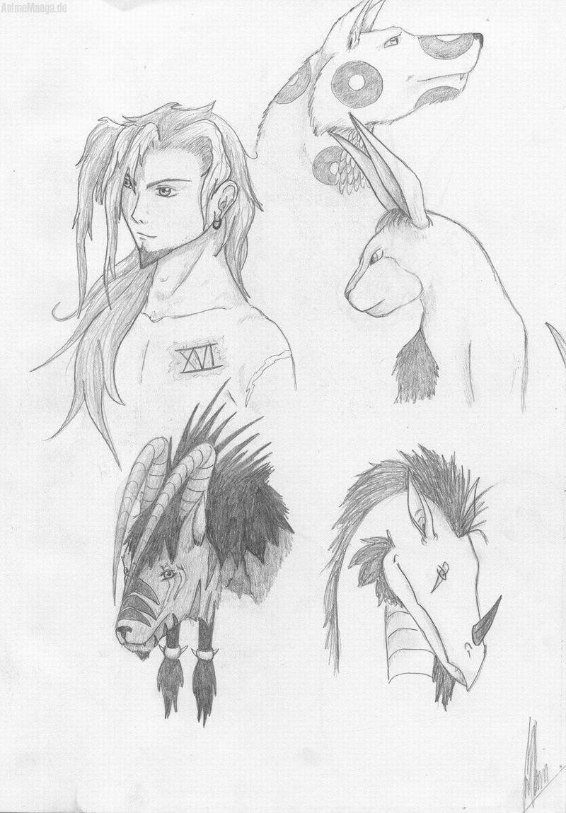 Saga Wrld heisst übrigens mein Comic und dies sind die fünf hauptcharakter. ganz oben ist Sajen, der Hauptcharakter schlechthin. um ihn hadelt die ganze Geschichte