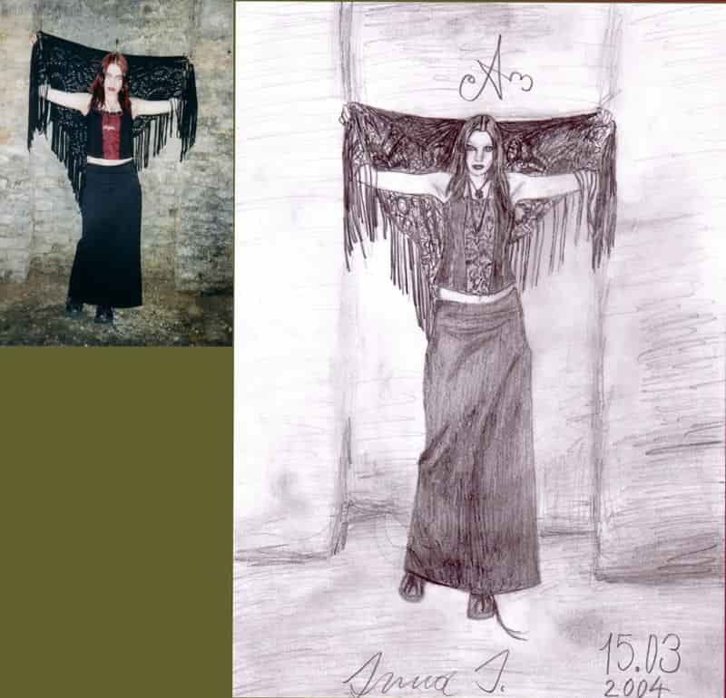 Tjaja, Ist halt nicht allzugenau abgezeichnet. Was sieses Tuch da & die Muster am Oberteil angeht, da hab ic mir nicht viel Mühe drum gemacht..!