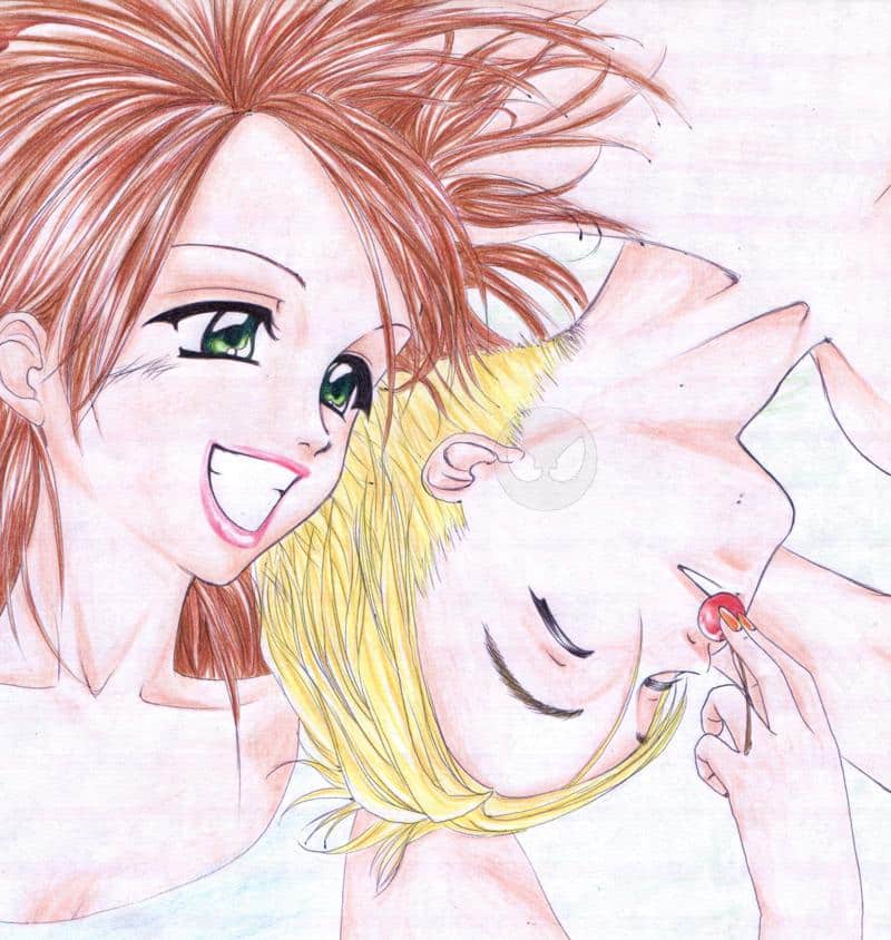 soooo, das is n pic, das ich noch inner 2ten woche der letzten ferien gezeichnet hab, un die sind für mich leida schon seit 2 wochen passe...*heul* das stellt dar, wie ein kumpel & ich uns damals mit kirschen gefüttert ham^^, nur dass seine haare net so lang sind, hab sie nur lang gezeichnet, weil ich kurze irgendwie net so jut kann... heute hab ich übrigens erfahren, dass er sich gestern hat ne glatze schneiden lassen O_______O°. ja. so sah ich in dem moment etwa aus. denn ich finds SCHEIßE!! so. genug dazu. bis denne, *alleknuddel* yours, glücksengel
