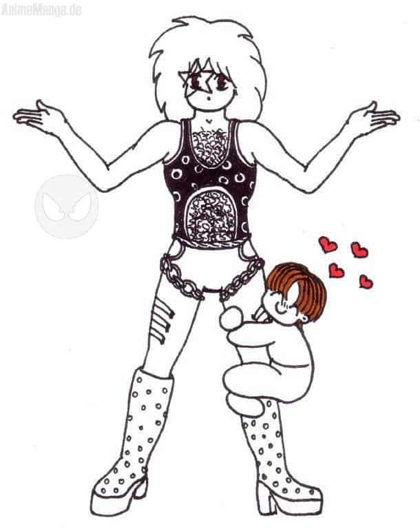 Manche von Euch mögen die Rock-Band Kiss kennen - dargestellt ist hier Paul Stanley, der Sänger und Gitarrist der Band und klein-Roe, die ihm am sprichwörtlichen Rockzipfel hängt ^-^ *seufz*