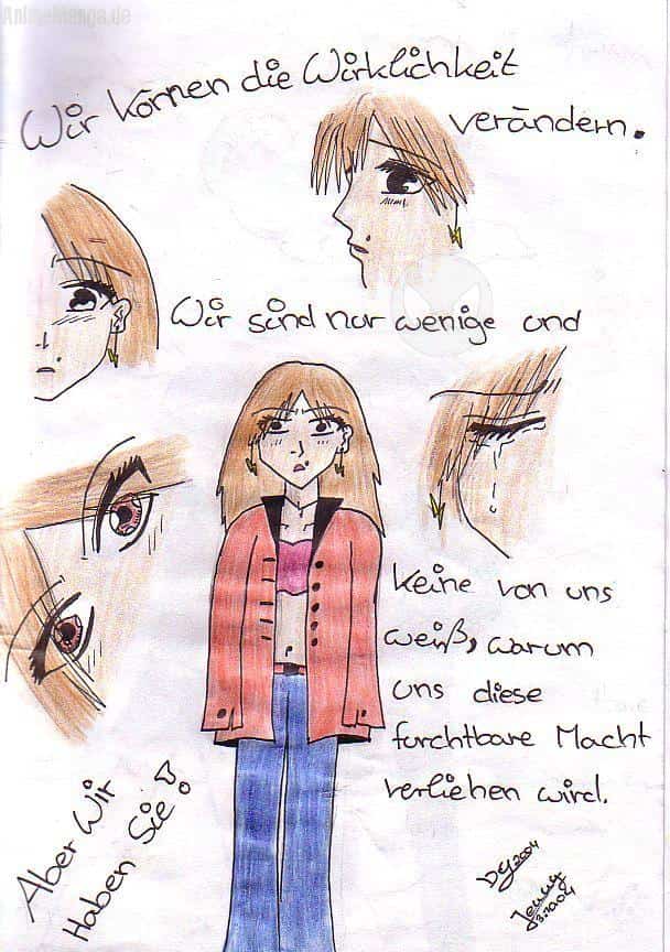 So nun ist dieses Bild entstanden, da viele meiner Freunde meinten in meine Bilder sollte ein bisschen mehr Farbe kommen dacht ich mir so jetzt zeig ichs euch: Und so ist dieses Bild entstanden, Der Text stammt aus dem Buch"Das Buch" *g*Ja so heist dieses Meister werk in dem Buch geht es um Generationen von Frauen die die Gabe vererbt bekommen die Wirklichkeit zu verändern, deswegen bekommen sie auch Ärger mit den Gnomen die über das Leben der Menschen Buch führen!! Naja ist ziemlich kompliziert %-) Aber zu letzt hab ich es dann doch alles verstanden *g* Also lest es doch einfach auch mal!!!!!.... Und bitte sagt mir ob ich auch weiter hin mit Farbe oder lieber mit Bleistift zeichnen sollte Bidddeee *knuddääälllz* sweet Vivi