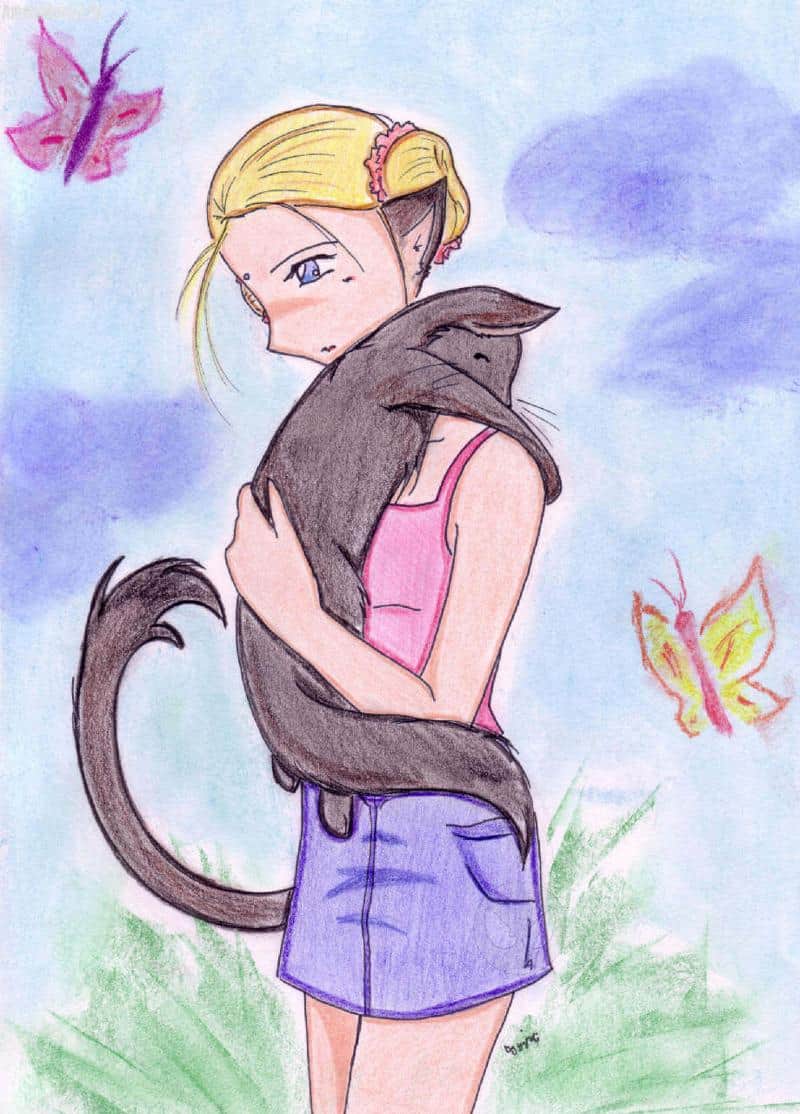 Das ist Nagusamé und sie hält nicht sich selbst im arm, sondern Nero^^ Das ist mein supasüßer Kater ^///^ *sabber* <-- ich spinn ich weiß, ich spinn^^