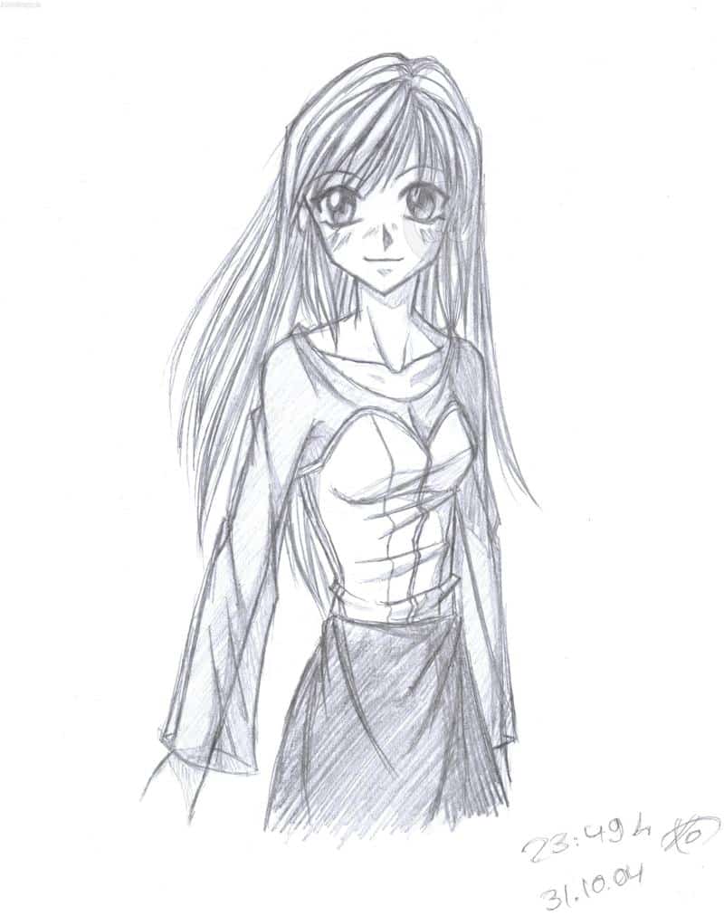 Was soll ich sagen... ich hab nix wirklich gutes hingekriegt gestern, habe meinen Stil über den Haufen geworfen und das kam dabei raus... Wie der Titel sagt, ein Mädchen. Ich bin übrigens nicht zu blöd zum Radieren, die Ärmel sind durchsichtig...