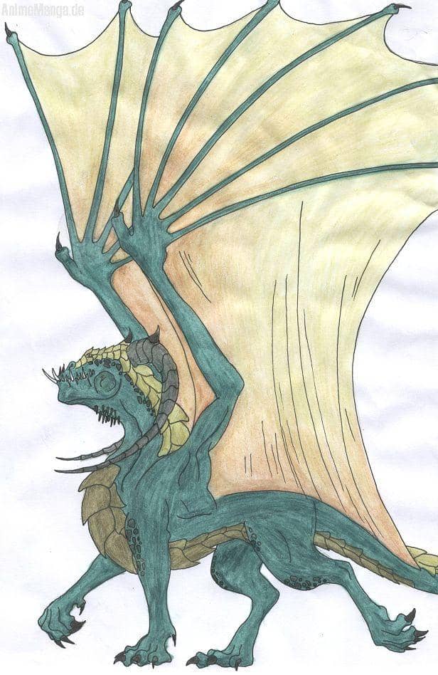Ein Grüner Drache. Ich find die Schuppen um´s Auge toll. und eine neue Art von Flügel hat er auch...