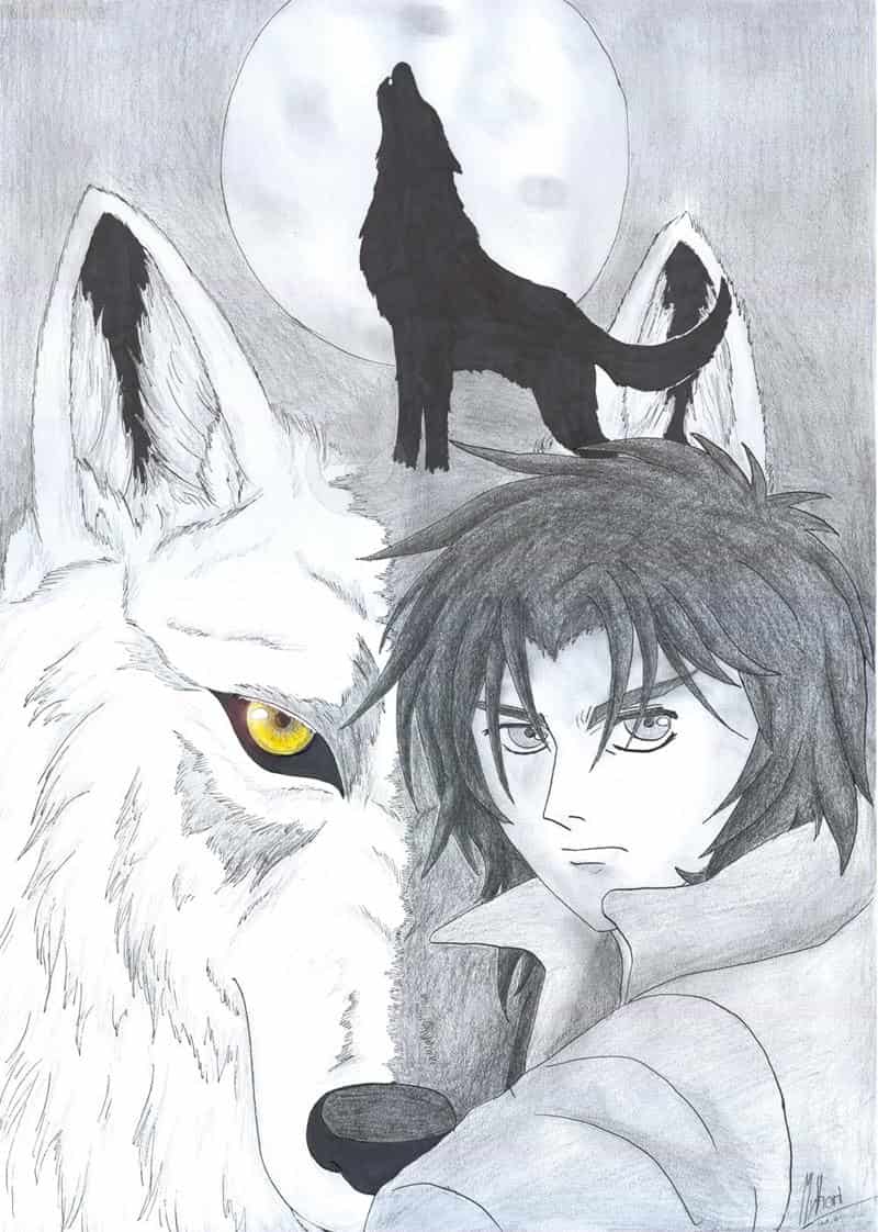 Waaa! Jetzt bin ich wach! Alsooo... hm. An diesem Bild hatte ich ganze zwei Tage! o.O (mit einer Schlafenspause, natürlich ^^0) Ich habe bei diesem Bild mal etwas gespielt und mehrere einzelne Elemente zusammengefügt. Der Wolf ist von einem Bild aus dem Artbook, Kiba (das ist doch Kiba, oder?) habe ich von einem anderen Bild genommen und dazugesetzt. der Wolf im hintergrund habe ich selber gezeichnet. (ich konnte mich noch an einen Wolf in dieser Pose aus dem Artbook erinnern^^) Tja, das ist dabei herausgekommen. Weil ich Kibas Augen als Wolf so wunderschön finde, habe ich sie als einziges Element mit Frabe gezeichnet. ich finde, das gibt dem Bild noch einen ganz speziellen Touch, oder? Der Rest ist mit Bleistift. ^^