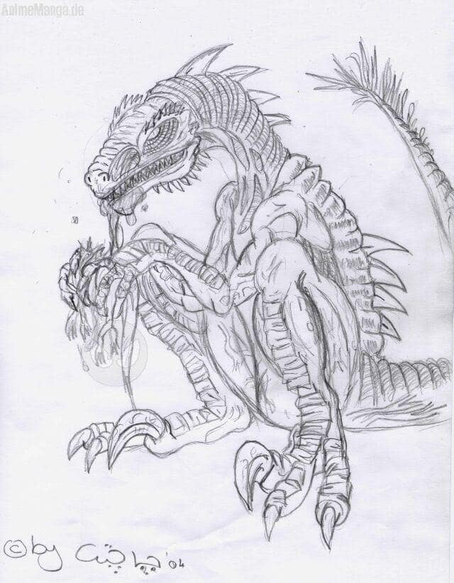 Nun, weine skitze von einem essendem Raptor. ^^" Oder: Wie sieht es aus, wenn ich Dinos abzeichne. XD