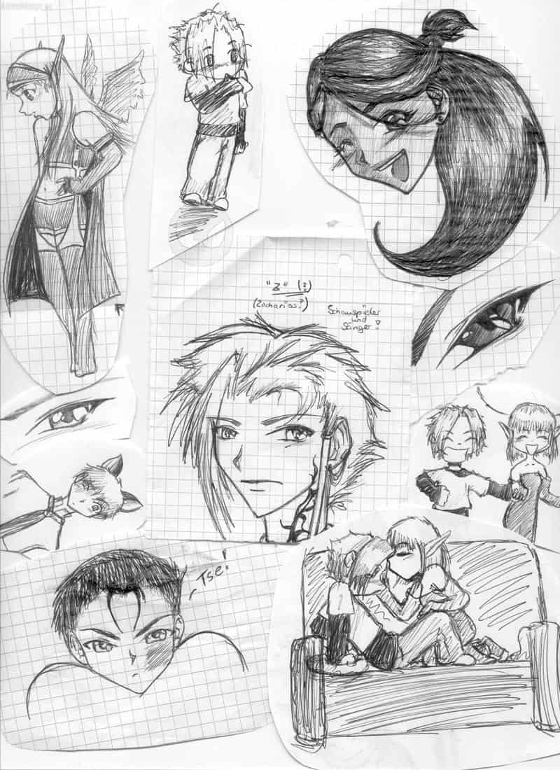 Colage : Also... Diese ganzen Kleinigkeiten gehören nun überhaupt nicht zusammen, aber es war mir zu blöd, nur haufenweise kleine bildchen einzuscannen. Das sind alles so kleine Krizzeleien, aus Mappen, oder Heften. ^^ *smile* Hab sonst nicht viel zu sagen! Sorrü