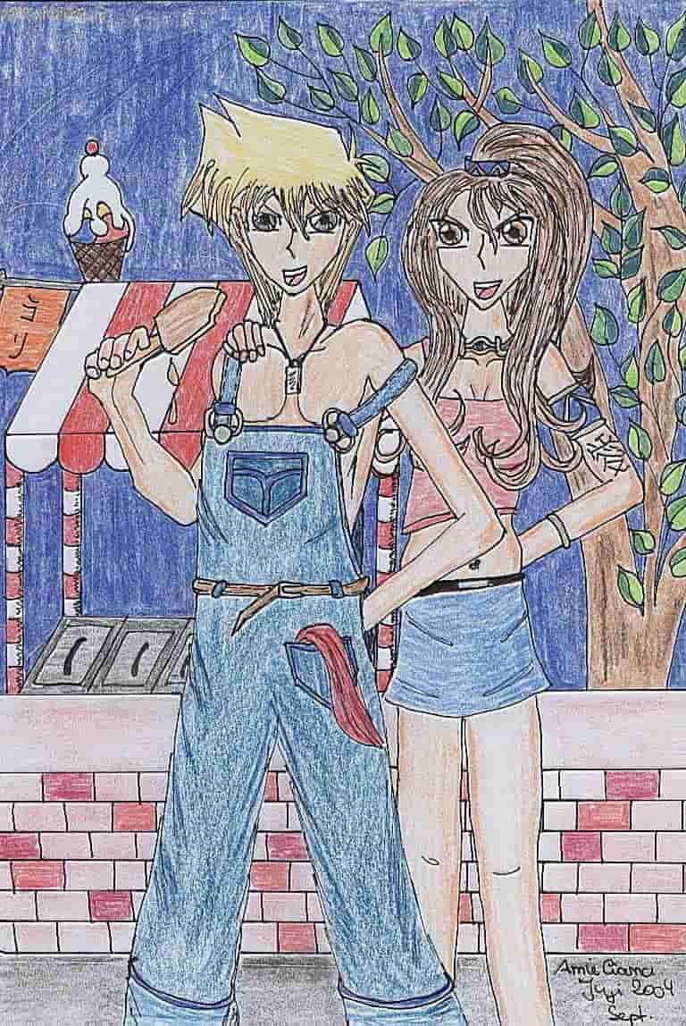 So, das Mädchen ist ein einer Charas, die in meinen Storries mitspielen. Die beiden mal im Schlamperlock. Hab mal ein Bild im Internet gesehen, wo Jou mit Latzhose, Spängchen im Haar, Pferdeschwanz und Eis in der Hand zu sehen ist und das hat mich auf die Idee dieses Bildes gebracht ;)