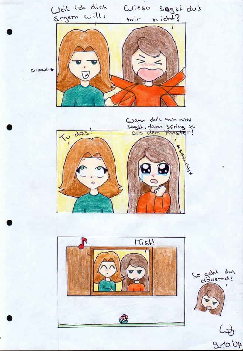 Also hab ich ihr angedroht dass ich(nach der stunde) aus dem fenster spring...mein pech war, dass unser klassenzimmer ebenerdig is ...