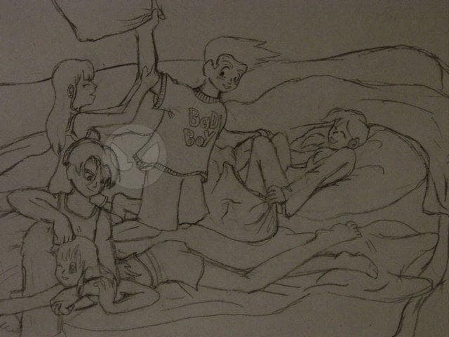 das ist wieder die clique vom letzten bild. es sieht ein bisschen unübersichtlich aus, wegen den noch nicht angemalten decken und so. vielleicht schreibe ich mal ne fanfiction über die 5?