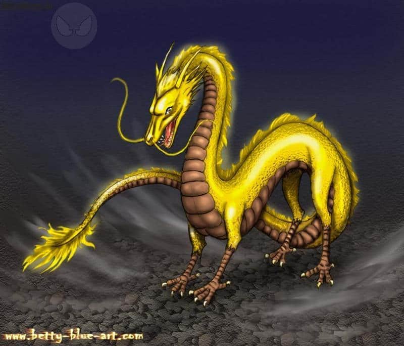 Habe mal einen Drachen mit Photoshop gezaubert^_^ Er soll golden sein.