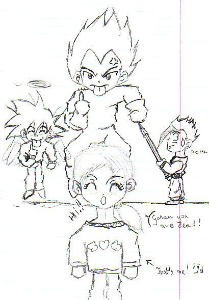 Ich, Mystic Gohan (kann er wirklich so gut malen?!), Goku (Engel ^_^`) und Vejita auf Wand...