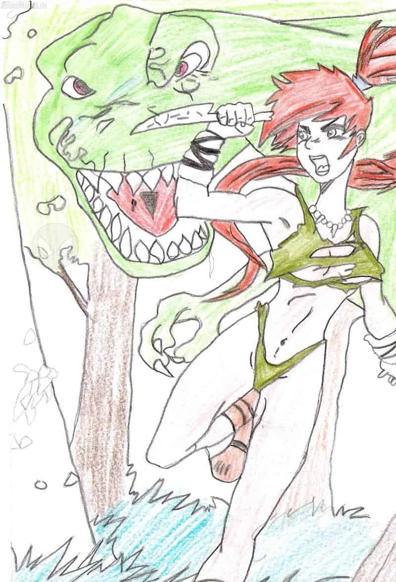 ok bei diesem Bild wollte ich eigentlich nur dieses Mädchen zeichnen aber das sah dann einbisschnen lehr aus dann habe ich nen Dino probiert ist aber net so gut geworden naja egal!!Eure Dollar HEL