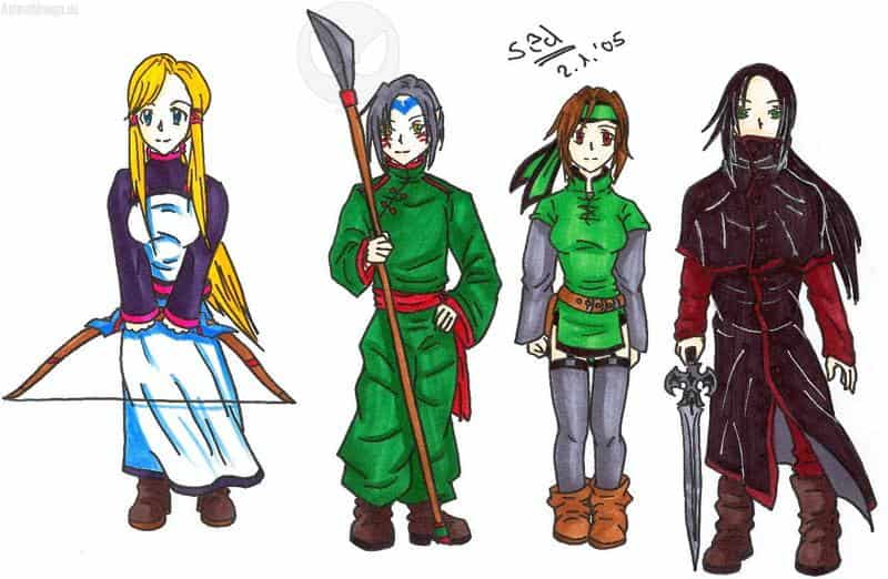 Hi, wie der titel es schon verräht werde ich in nächster zeit ein douij zeichnen. Die chara sind schon fertig sollen auch nur 4 sein. Ich stell sie euch mal vor (v.l.n.r.) Taya (weißmagierin), Nigel (halbdämon), Sid (Vampir) und Ville ( Schwarzer Erz-magier) so das waren sie. Mehr infos gibt´s dann in douij. Eure Sid//