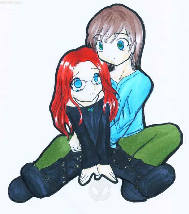 musste gleich ma n bild von schatzi und mir malen T__T bin paar tage weg *schnüff* ... doof... *desh knutsch* lieb dich ;__;