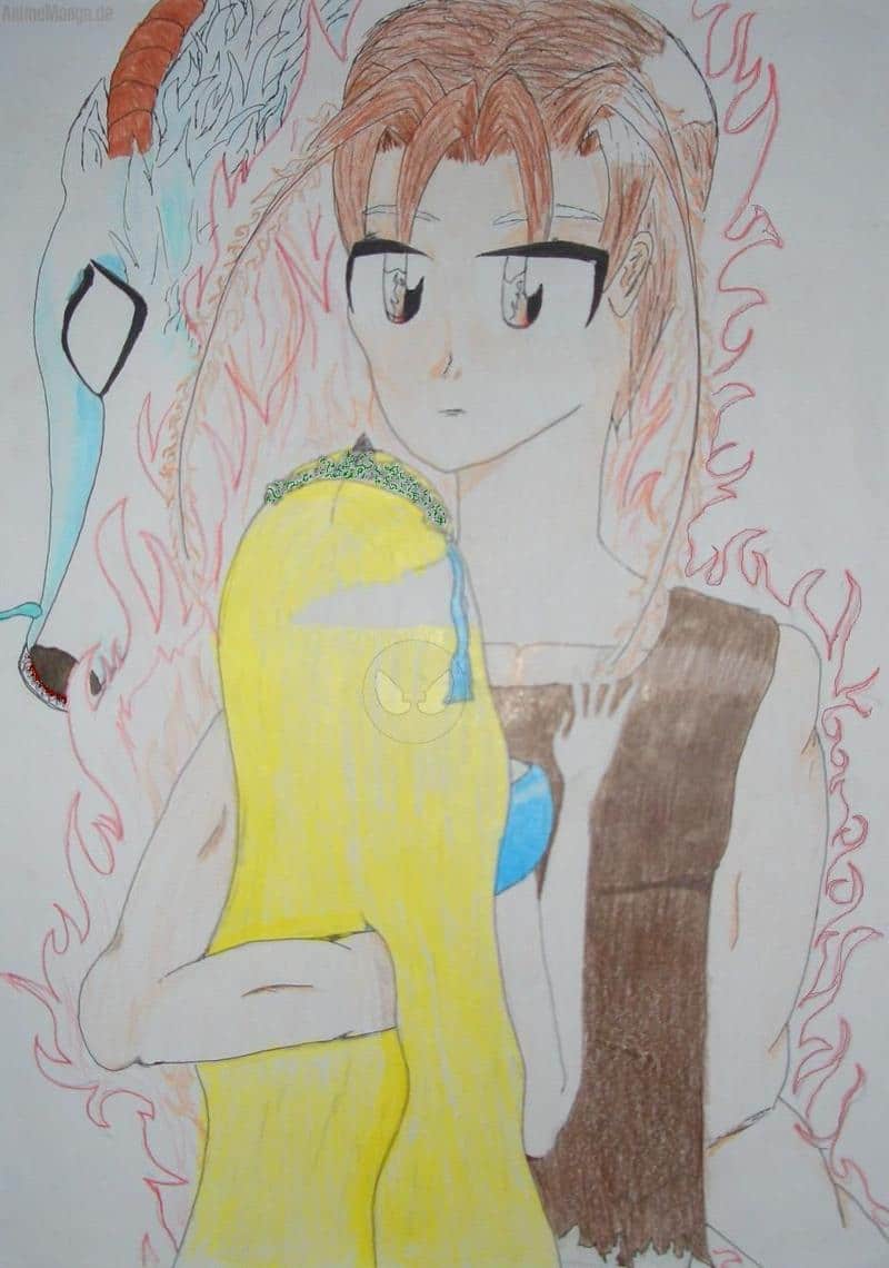 So... *hände in die Hüfte stämm* endlich mal ein halbwegs internet taugliches bild... diese sch*i*- ver*ec*te Kamera kann mich doch mal am a*s*h l*ck*n... oh je... etz thab i aber schlimme worte gesagt... nja... aber es regt echt auf... die Haare sind eigentlich ein durchgehendes gelb... wär mit nem scanner warscheinlich besser gegangen... aaaaaaber neeeeeeeeeeeein... frau kann ihn ja nicht anschließen... *phlödt* nja... aba eigetich sod i stolz sei auf des bili... immahin sieht *er* aus wie an *er*... oda??? Bitte sagt, dass *er* assieht wie an *er*... bitte bitte bitte... der Drache im hintergrund is au cool... find i... aba iweiß net ob der lieb oder böse isch...??? please help me… alsööööööööööö… ^^w_inkewinke hab euch alle gaaaaaanz arg knuddelig... s is auf jedenfall n ziemlich altes...