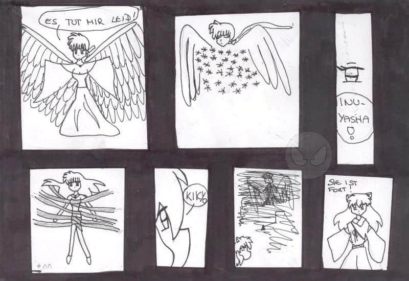 Naja, das einzige bild das mir gefällt ist dass mit kikyo mit den Bändern, fragt mich bitte nicht warum sie dann plötzlich bänder hat, ist einfach so!^^ ach ja, ich habe nun, das 2. kapitel angefangen, und höre nun mit diesem komischen mund auf!^^ Das wird viele freun, ich brauch nur noch etwas länger, ich überlege mir nämlich grad ob ichs auch colorieren soll!^^