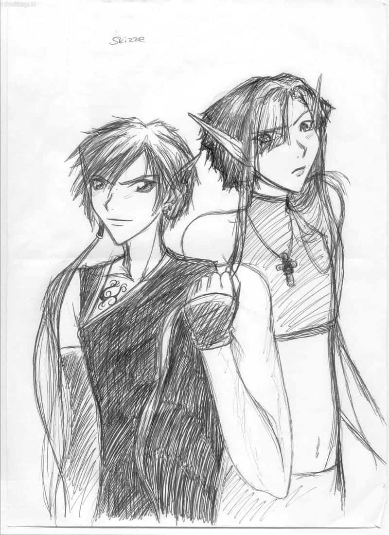 Miyako und Pyro Vorskizze: Okay... das komische ding im hintergrund hat ne ziemlich angepisste frisur, aber der im Vordergrund ist cool!!!