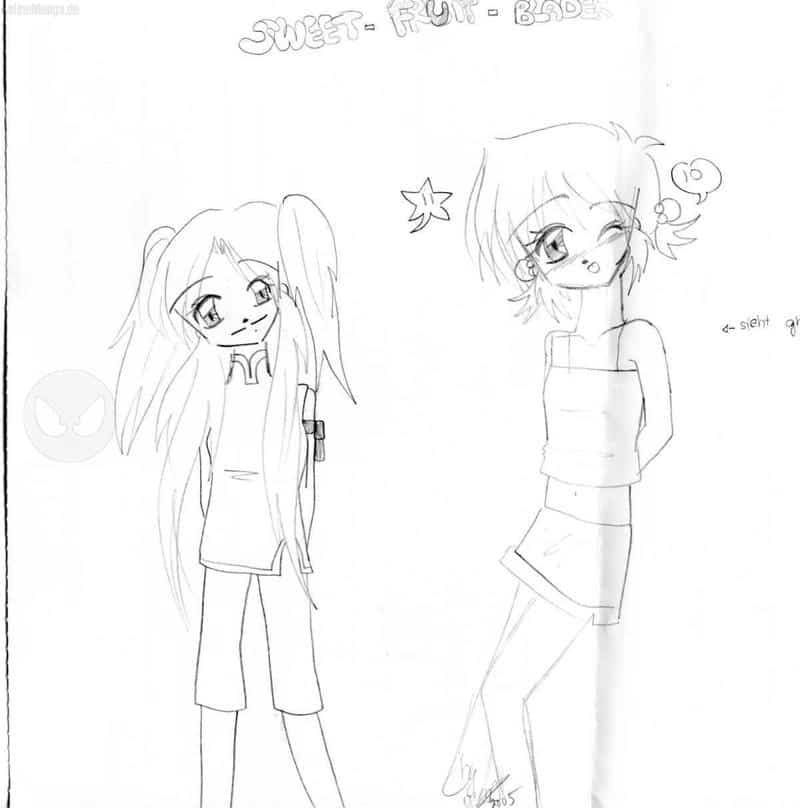 so..ja das isn Bild...(ja ach...-.-")...eh...ich hatte Lust das ehemalige team Sweet-Frui-Blader zu kriggln...ja...eh...öhm...hust...ja...eh...achja...normalerweise ist Rayku größer als Kaiko...aber ich hab sie etwas kleina gemalt weil sie hinten stehen soll....^^