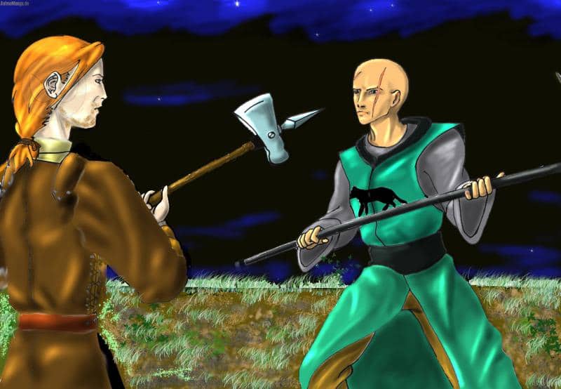 Mein Schatz und ich,naja eher unsere Charas ausm schwarzen auge. Mein Gimpex is der Krieger (berittener Schütze) mit den roten Haaren mal schaun ob jemand die Profession Walkirs erkennt (glaub net dass hier jemand dsa zockt)