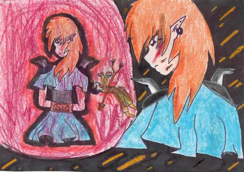 Das bild ist etwas komisch und man versteht auch nicht wirklich was es darstellen soll. So, es sollte eigentlich 2deutig sein. Der große Kopf ist das "Reale" bild. und das andere ist eine Gedankenblase von ihr!^^ Das bild ist mit Olkreiden ausgemalt und naja....... das wars auch, ich finds für Olkreiden eigentlich eh recht gut, ich hab mir sehr viel mühe gegeben aber das ist schwer mit sowas zu malen!^^