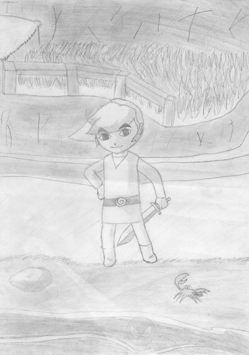 Das soll Link am Strand seiner Heimatinsel darstellen.