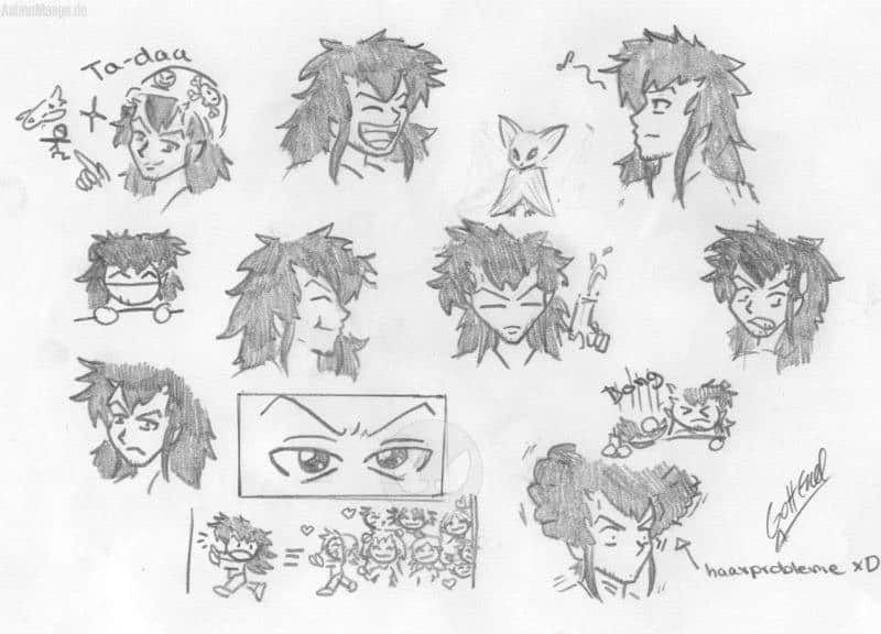 alter: (als mensch) 21| augenfarbe: rot| haarfarbe: (wie alle ) schwarz| hobbys: krieg spielen, vor seinen fans fliehen (ich hab die drei mal rumgezeigt, er erntete am meisten ruhm! XD), haare kämmen (hat irgendwie ein problem damit...)u.s.w