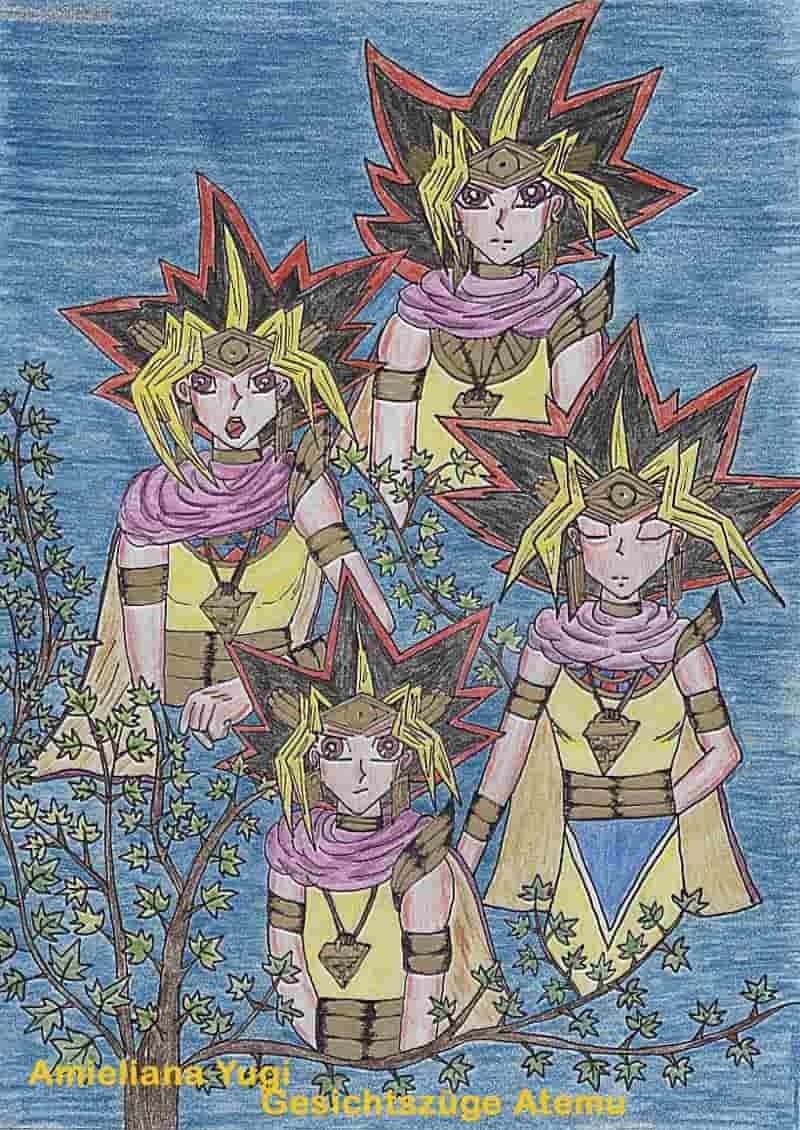 Ein Bild, worauf Atemu mit verschiedenen gesichtszügen und Gesten zu sehen ist: